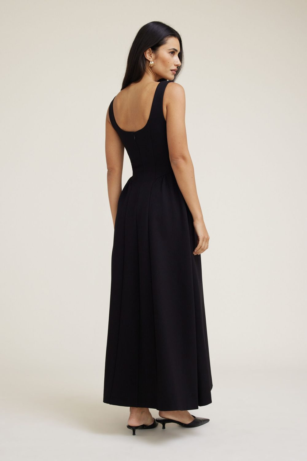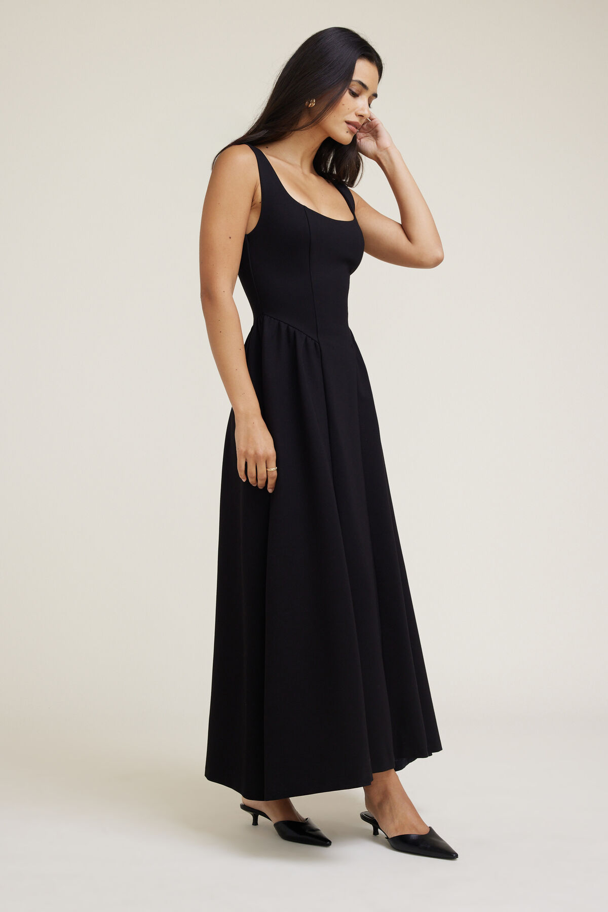This maxi dress is made from heavyweight ponte with a soft, stretchy handfeel for a sculpting look that hugs you in all the right places. It’s fitted at the bust and flares out at the waist for a flirty and flouncy feel. Pair it with a bag and make it your go-to going out dress for nights out.